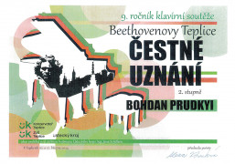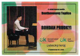 Posluchač 2 ročníku Bogdan Prudkyi, z klavírní třídy PaedDr. Marie Wiesnerové, získal na klavírní soutěži Beethovenovy Teplice, která se konala 16. března 2024, Čestné uznání 2. stupně ve své soutěžní kategorii. Bohdanovi i jeho pedagožce blahopřejeme!