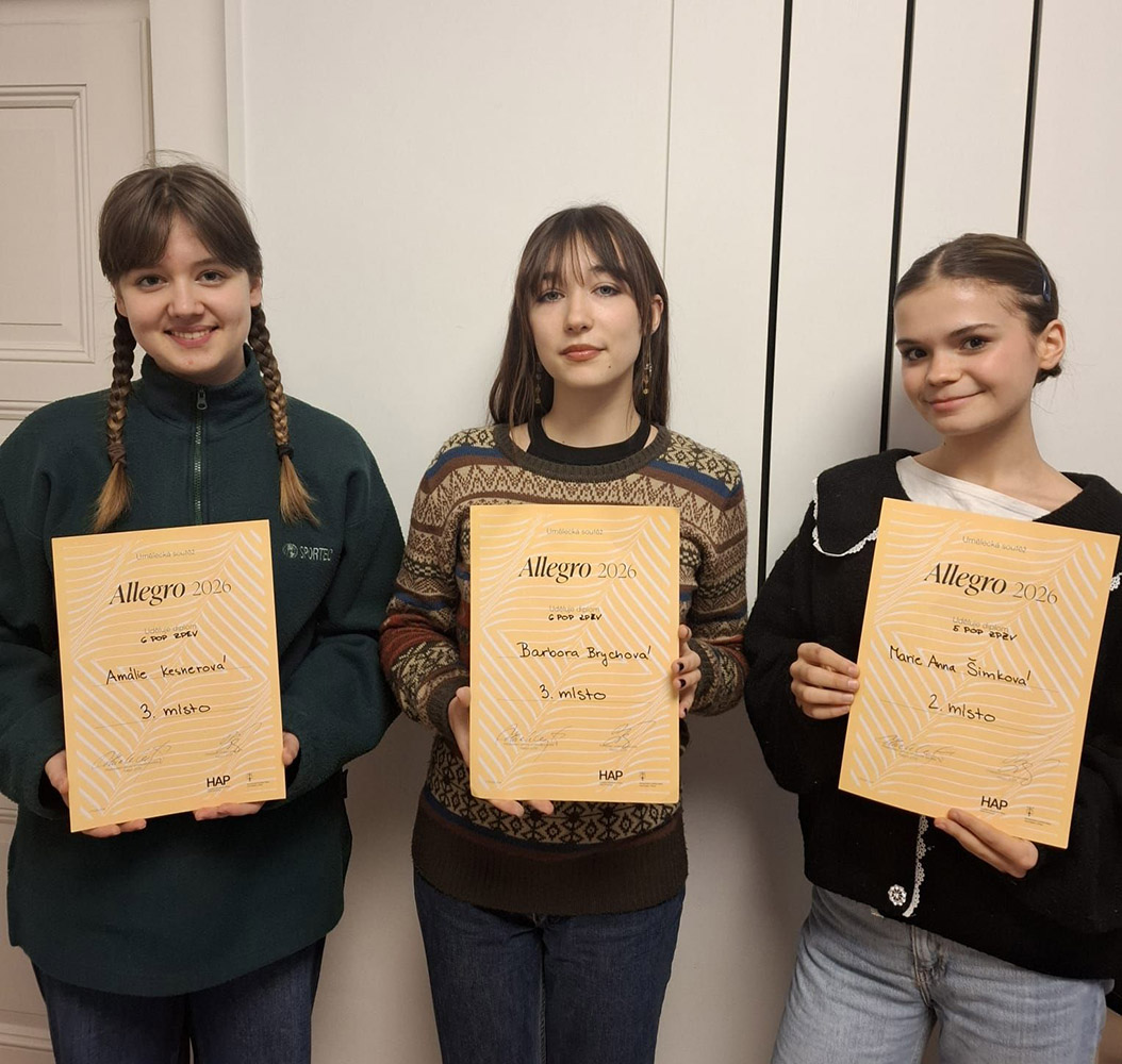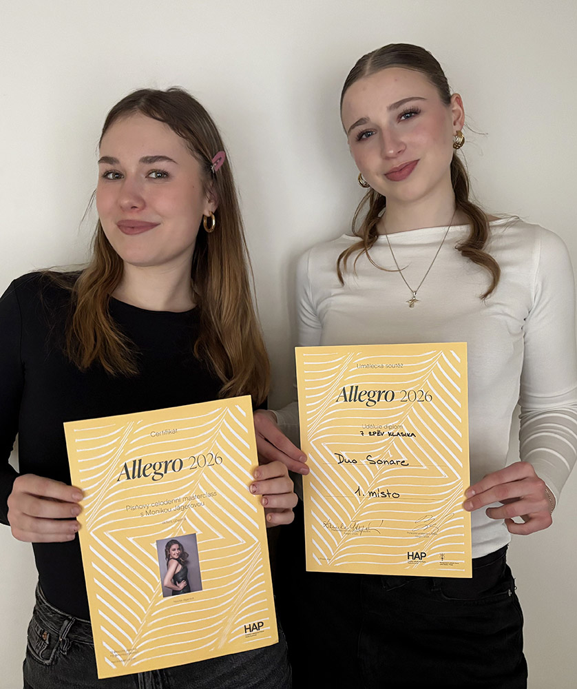Ve dnech 23.–25. ledna 2026 se v Kaiserštejnském paláci v Praze konala soutěž Allegro 2026. Naši studenti získali několik ocenění jak klasickém zpěvu sólovém, tak ve zpěvu komorním.