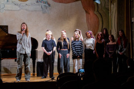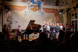 Na klavír studenty doprovázel BcA. Mikuláš Pokorný a na violoncello studentka 6. ročníku Ema Ramdanová.