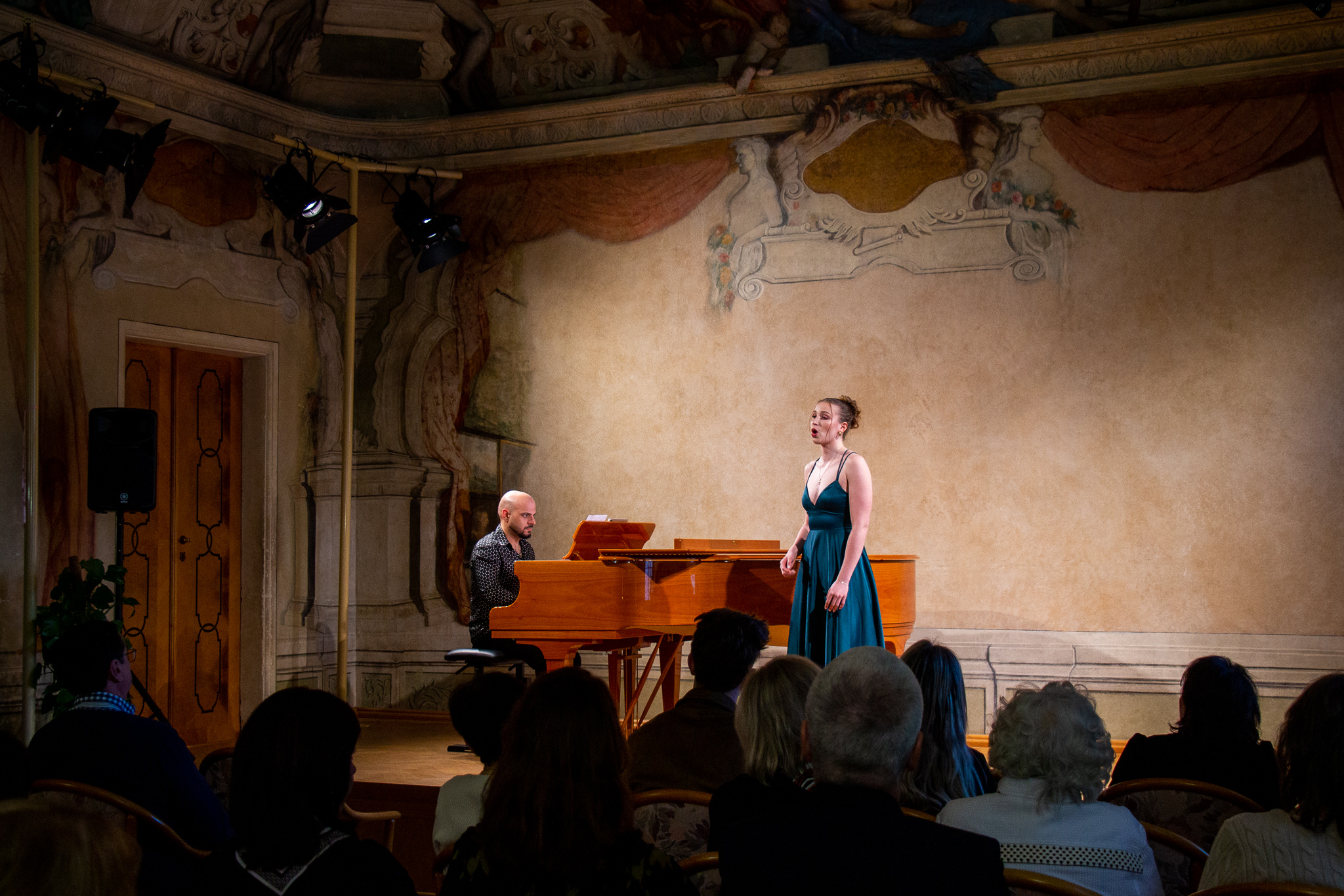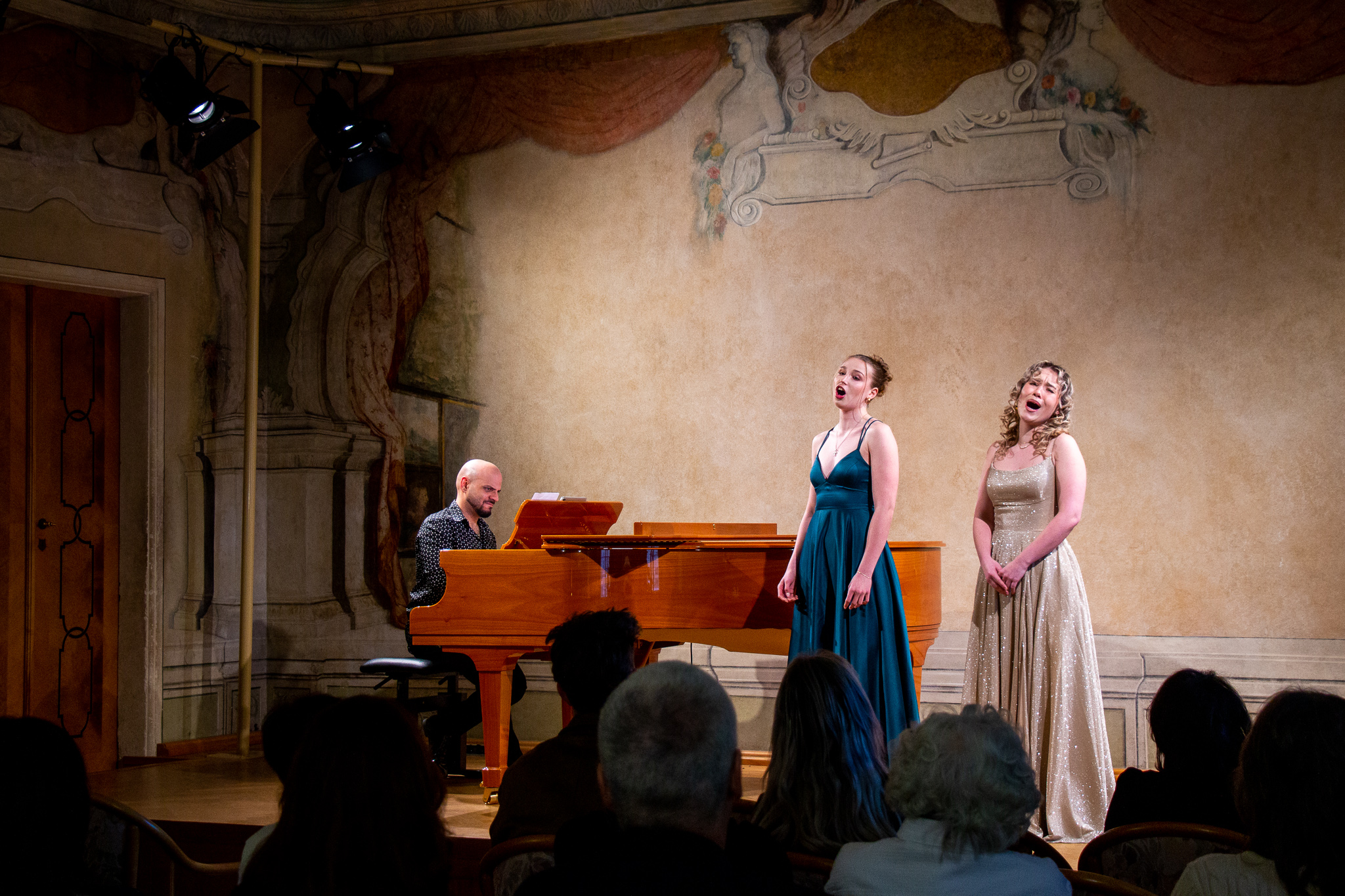 Na pódiu se vedle Daniela představili aktivní účastníci Masterclass, mezi nimiž byly i studentky naší konzervatoře Anna Jakubíčková (2. ročník) a Sára Hejlová (3. ročník) z pěvecké třídy Mgr. Jarmily Chaloupkové.