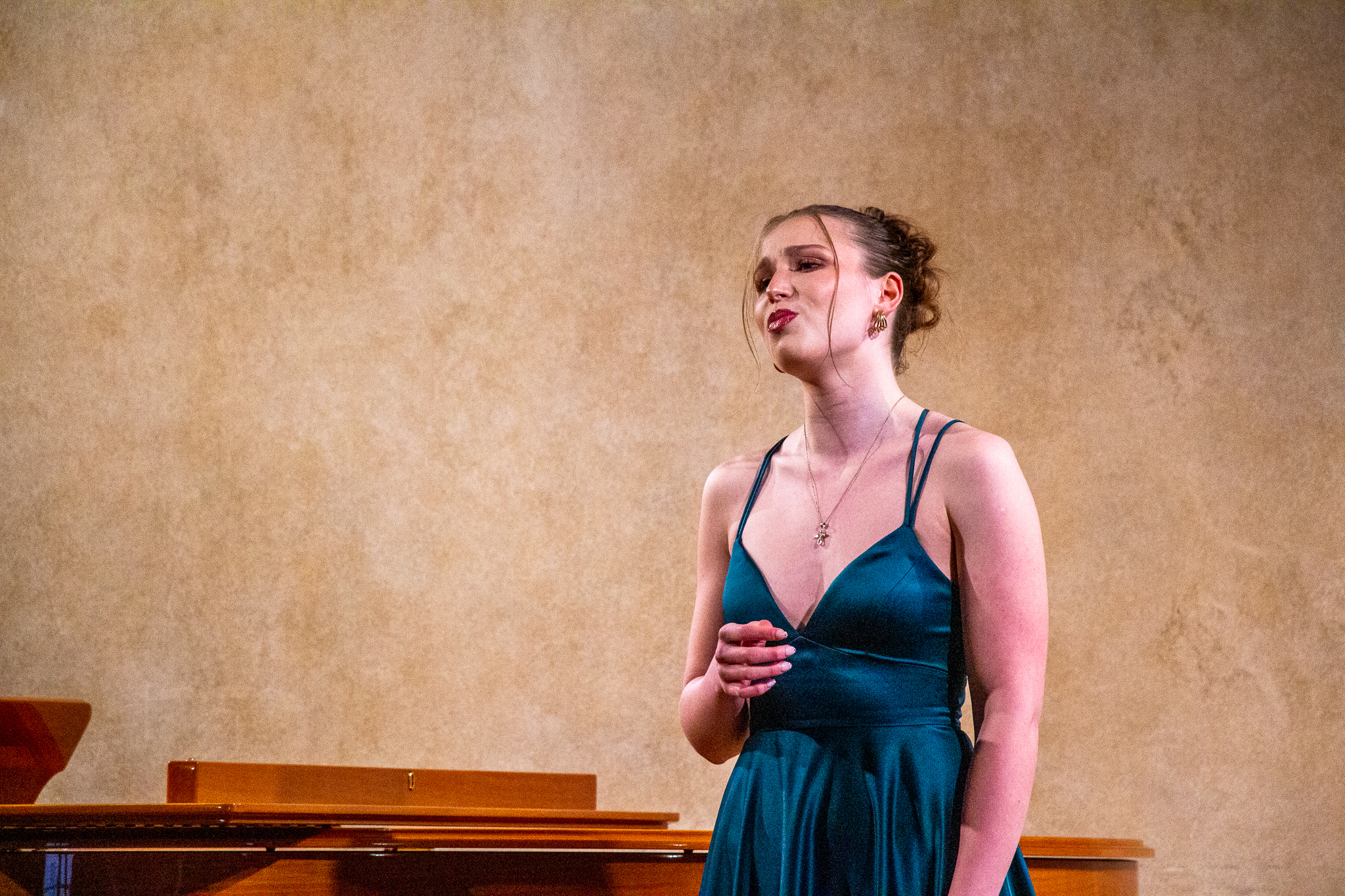 Na pódiu se vedle Daniela představili aktivní účastníci Masterclass, mezi nimiž byly i studentky naší konzervatoře Anna Jakubíčková (2. ročník) a Sára Hejlová (3. ročník) z pěvecké třídy Mgr. Jarmily Chaloupkové.