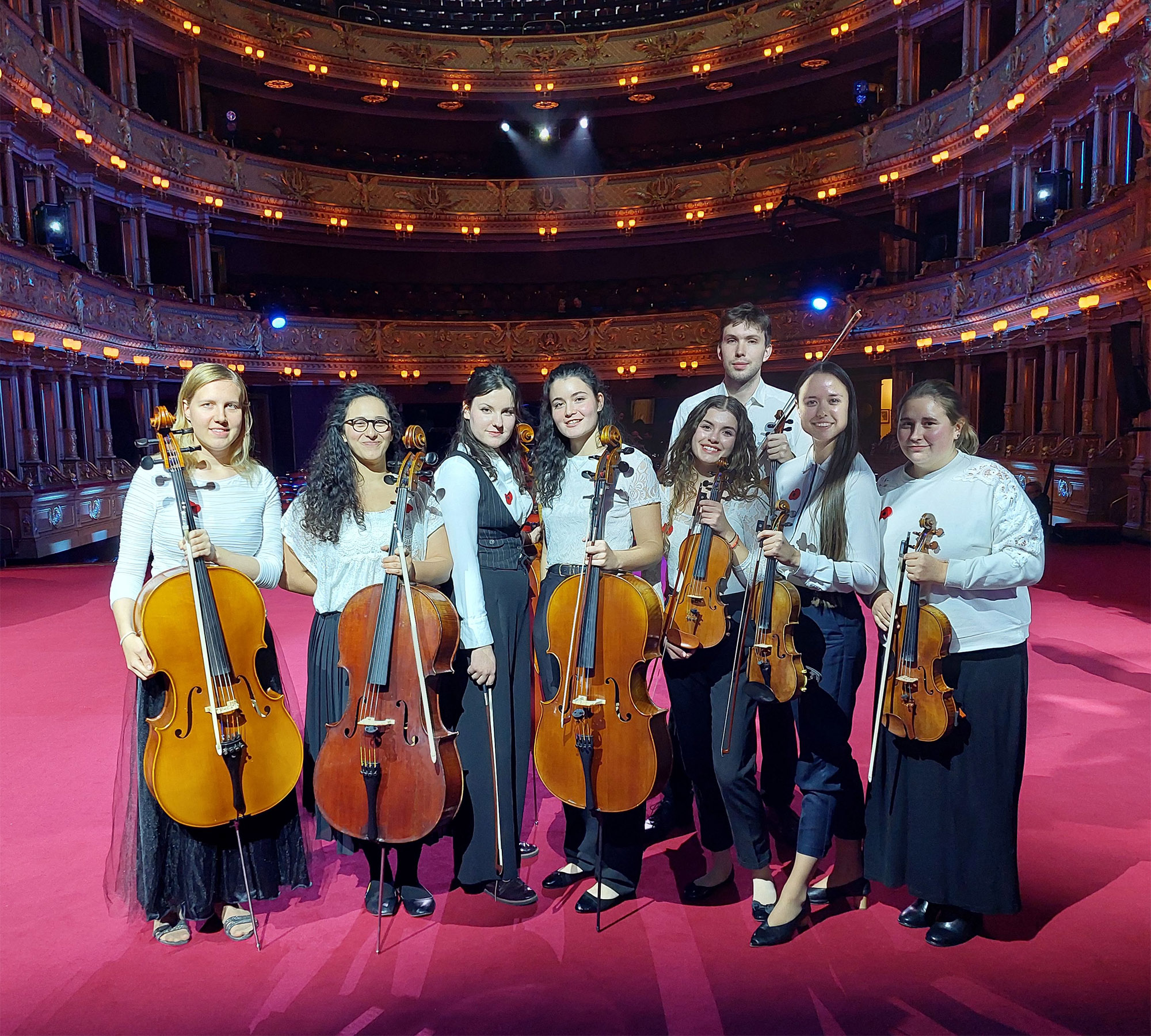 Letos se slavnostní večer konal v pražském Národním divadle a v přímém přenosu ho tradičně vysílala Česká televize. V orchestru při této příležitosti dostalo možnost účinkovat také 7 studentů Oddělení strunných nástrojů KJD, jmenovitě Lucie Vastlová, Ema Ramdanová, Anna Rektoříková, Doubravka Makrlíková, Josef Božejovský, Daria Kassina a Tereza Nosková. Na fotografii jsou naši studenti zachyceni před zahájením slavnostního večera.