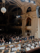 Bylo to ipřekvapením pro přítomné publikum, kdy se naši studenti zvarhanní empory nad pódiem přidali ksólistovi večera vzávěrečné árii “Nessun dorma” zPucciniho Turandot anásledně, již na jevišti, vpřídavku při slavné písni Funiculì, Funiculà. Koncert doprovázela Prague Philharmonia pod vedením francouzského dirigenta Frédérica Chaslina.