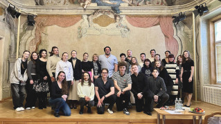 Všichni přítomní studenti a pedagogové měli tu čest sledovat práci Adama Plachetky s aktivními účastníky kurzů, kterými byli studenti Lucie Batelková, Veronika Nováková, Amálie Motošická, Anna Flajšmanová, Martin Žvachta, Vanesa Soares, Veronika Chamolová a Sára Karolína Bosmanová (na fotce zleva).
